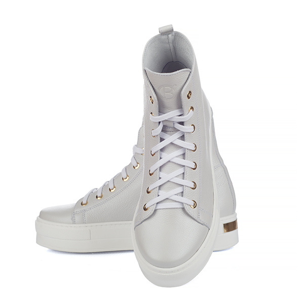 Réalisées en cuir couleur perle, posées sur une semelle résistante à l'abrasion.