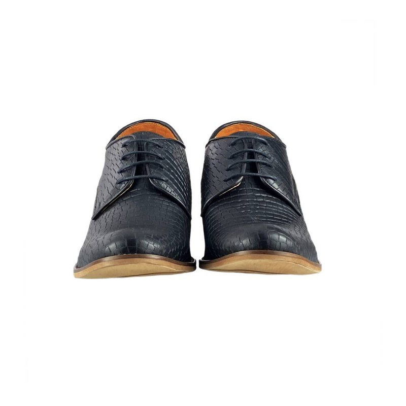- Chaussures entièrement réalisées en cuir naturel noir imitant la peau de crocodile.