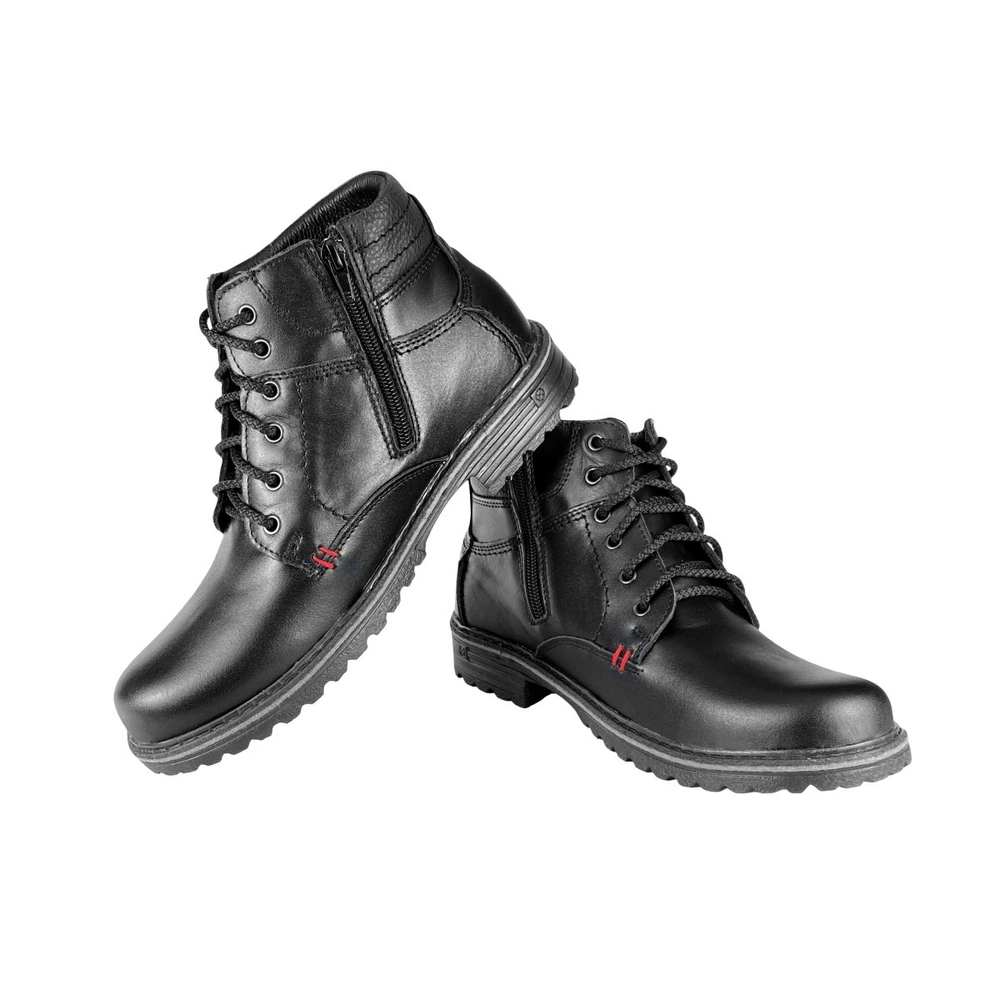 Confortables bottes à lacets pour homme en cuir véritable noir.